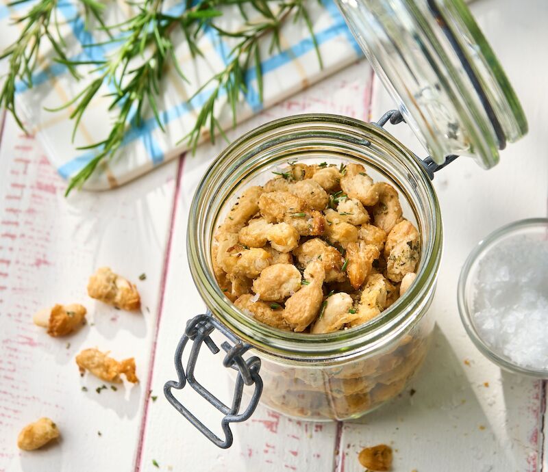 The real game-changer with homemade snacks, however, is the endless array of flavours: Mediterranean herbs such as oregano, rosemary and lemon zest go perfectly with chickpeas. For Middle Eastern flair, add cumin, turmeric and coriander. Or turn up the heat with paprika, chili and smoked salt. Even a sweet & savoury twist can be created with maple syrup, cinnamon and some sea salt, for example.