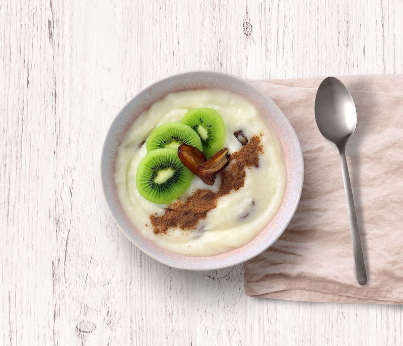 Semolina pudding with kiwi & date >>
