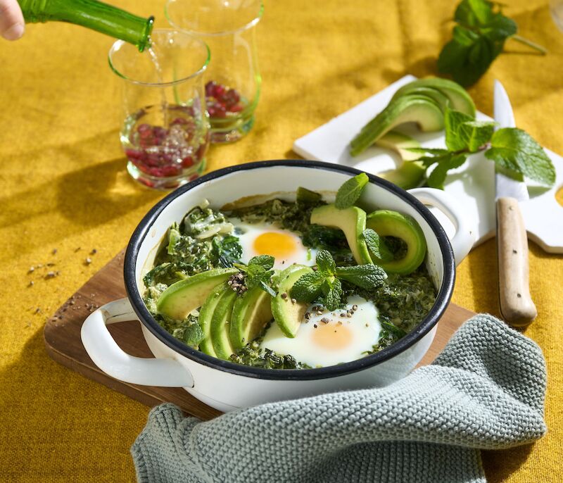 If you prefer a less spicy version or want to swap the feta for a lighter alternative, you can easily adjust the sauce in the Bosch BetterFood App – or try this green shakshuka with avocado and mint: