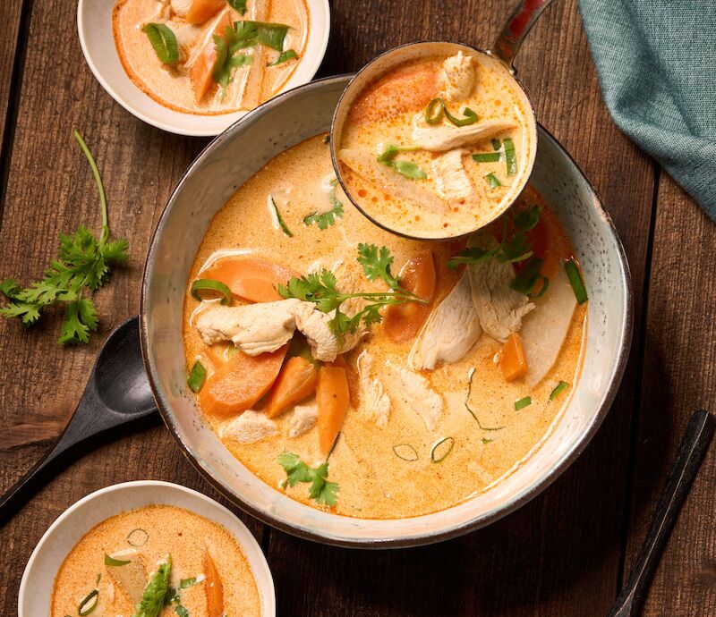 Sometimes you’ve got a little of everything left – not quite enough for a full dish, but far too good to waste. That’s where soups and stews shine. Toss in leftover veggies, legumes, herbs, or even a spoonful of cream. Whether it’s a creamy puréed soup or a spicy Thai-inspired bowl, these dishes thrive on variety.
